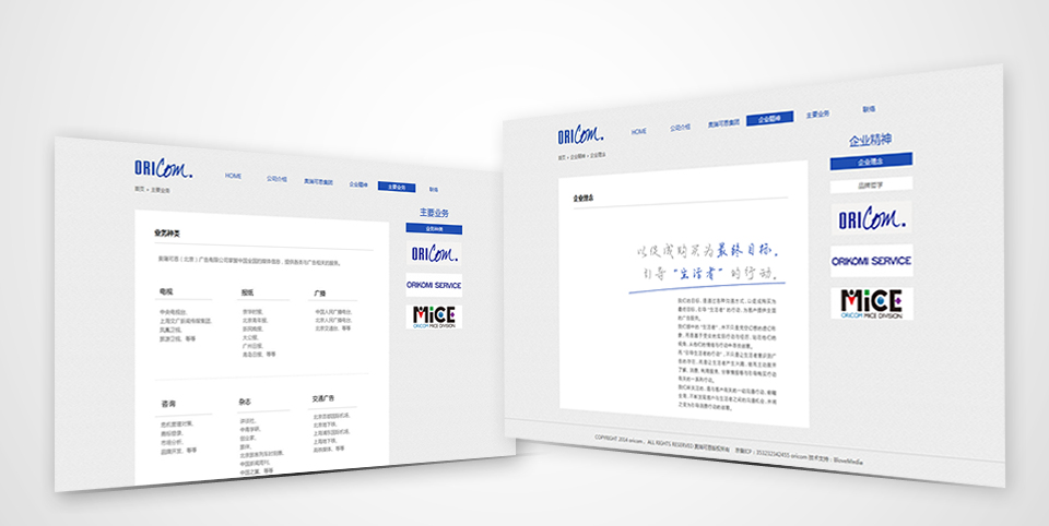 奧瑞可恩集團是一家集綜合廣告代理、不動產(chǎn)持有管理,夾頁廣告為一體的日本廣告集團,奧瑞可恩集團自2001年開始發(fā)展中國業(yè)務(wù),于2005年設(shè)立北京辦事處并命名為奧瑞可恩(北京)廣告有限公司。2014年奧瑞可恩在眾多供應(yīng)商中選中藍(lán)媒體,為其北京代表處搭建官方網(wǎng)站。依托于奧瑞可恩的既有風(fēng)格,藍(lán)媒體的視覺創(chuàng)意總監(jiān)制定了簡潔大氣的設(shè)計主基調(diào),技術(shù)人員根據(jù)客戶需求,定制編寫了安全穩(wěn)定,簡潔好用的技術(shù)模塊。整個合作的過程中,藍(lán)媒體細(xì)致入微的服務(wù)精神,感動了這家日式風(fēng)格的廣告公司,獲得了認(rèn)可和好評。