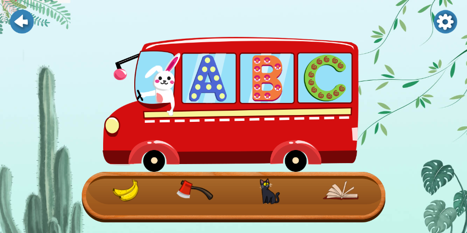 略帶闖關(guān)性的方式26個(gè)字母即是a-z的26個(gè)關(guān)卡,而避免讓寶寶產(chǎn)生挫敗感。各色小動物駕駛巴士讓小朋友游玩興趣不斷。整個(gè)關(guān)卡聲形并茂的方式讓寶寶參與互動與挑戰(zhàn),同時(shí)浸泡在初學(xué)英語的語境里。游戲場景包括兩種模式,而每一種模式不是孤立存在,通過簡單的單詞拖拽互動使寶寶強(qiáng)化單詞的學(xué)習(xí)。