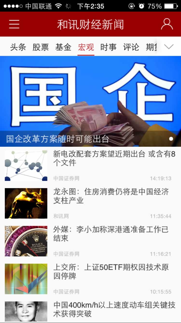 描述:《和訊財經(jīng)》是和訊網(wǎng)精心打造的一款手機(jī)財經(jīng)新聞軟件。以用戶體驗為主導(dǎo),展現(xiàn)實時行情數(shù)據(jù)和專業(yè)財經(jīng)新聞,詳細(xì)的頻道分類,覆蓋了股票、基金、黃金、外匯、期貨、債券、讀書、房產(chǎn)、理財、銀行、保險、信托、房產(chǎn)、汽車等。同時,以股票行情為核心,輔以港股、股指期貨、外匯、基金、債券、全球行情,配合分時、K線、F10等基本數(shù)據(jù),各種實用技術(shù)指標(biāo),是您必備的財經(jīng)軟件。